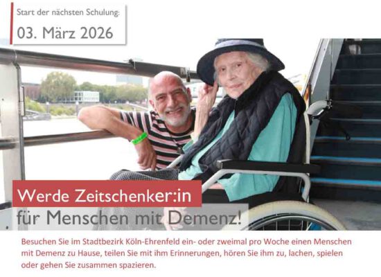 Start der nächsten Schulung: 03. März 2026 Besuchen Sie im Stadtbezirk Köln-Ehrenfeld ein- oder zweimal pro Woche einen Menschen mit Demenz zu […]